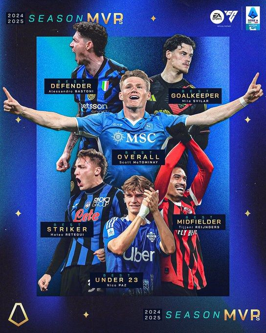 Se Svilar foi o melhor guarda-redes, Alessandro Bastoni (Inter) foi o melhor defesa, Tijani Reijnders (Milan) o melhor médio e Mateo Retegui (Atalanta) considerado o melhor avançado. O prémio de melhor jogador foi para o escocês Scott McTominay, campeão no Nápoles, enquanto Nico Paz (Como) ganhou a distinção de melhor jogador sub-23.
