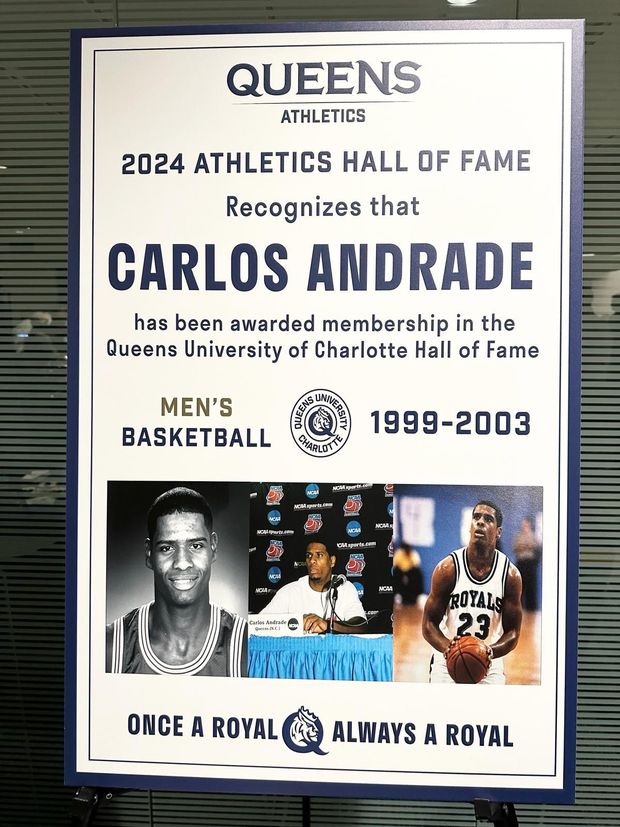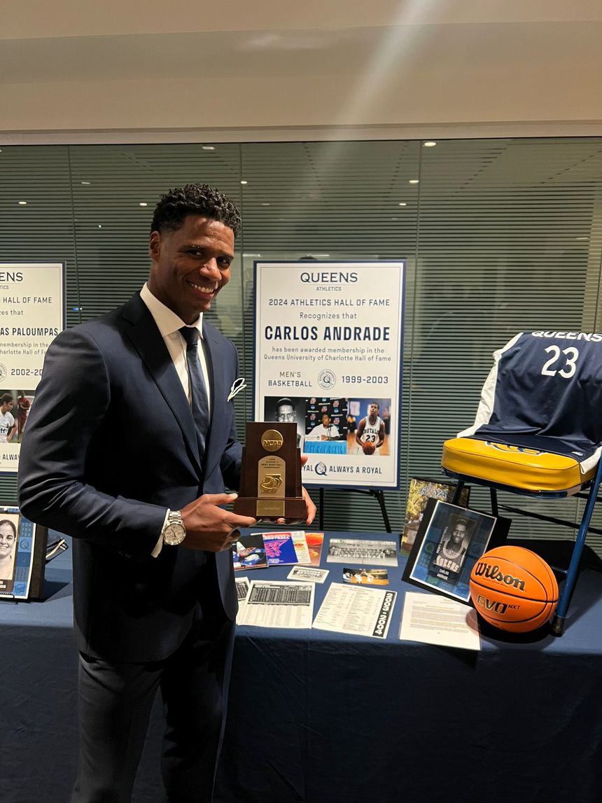 Jogador da Universidade de Queens de Charlotte durante quatro temporadas (1999/00-2002/03), o ex-basquetebolista Carlos Andrade foi alvo, este fim de semana, de uma homenagem nos Estados Unidos com a ‘sua’ faculdade a inclui-lo no Hall of Fame do departamento desportivo. O internacional português é apenas o sexto basquetebolista masculino a receber tal honra a nível individual.