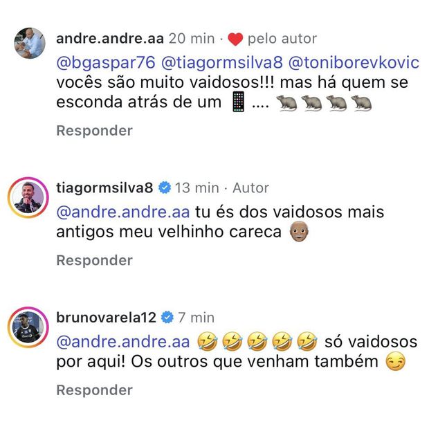 André André, que terminou a carreira no final da época passada, foi mais longe e escreveu «que há quem se esconda atrás de um telemóvel».