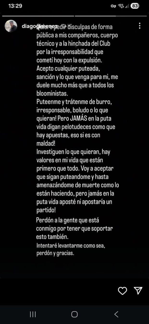 Posteriormente, o jogador expulso reagiu nas redes sociais, pedindo desculpa.