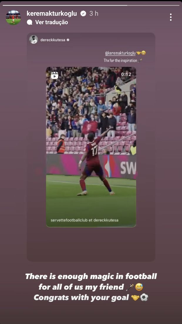 Akturkoglu prontamente respondeu. «Há magia suficiente no futebol para todos nós meu amigo. Parabéns pelo teu golo», escreveu o extremo, partilhando a celebração de Derek.