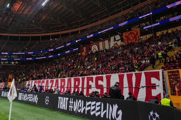 Faixas pró-Palestina e homenagens a Diogo Jota no Galatasaray x Liverpool