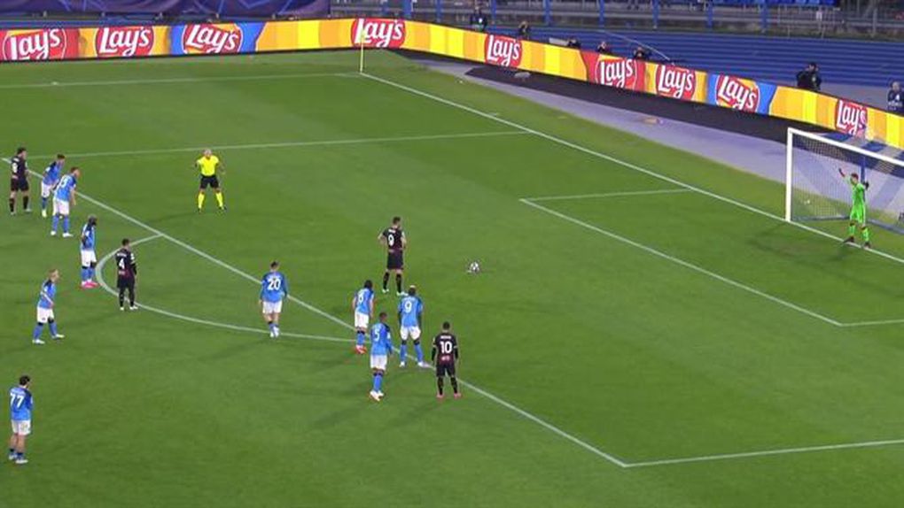Minuto 22 do Nápoles-Milan, Giroud desperdiça uma grande penalidade (defesa de Alex Meret, a adivinhar o lado) que tinha sido assinalada por falta de Mário Rui sobre Rafael Leão, que teve mesmo de receber assistência.