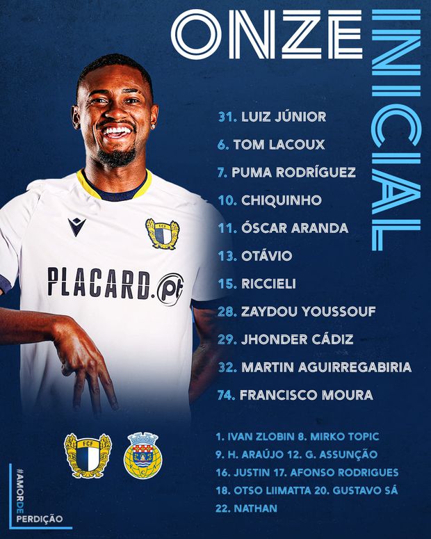Famalicão: Luiz Júnior (31); Martín Aguirregabiria (32), Riccieli (15) C, Otávio (13) e Francisco Moura (74); Lacoux (6) e Zaydou Youssouf (28); Aranda (11), Chiquinho (10) e Puma Rodríguez (7); Jhonder Cádiz (29)
