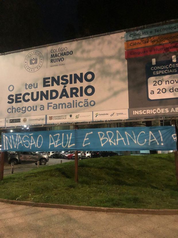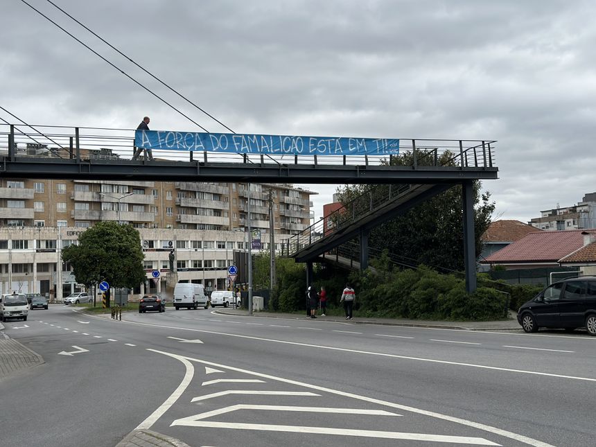 Foi um amanhecer pintado a azul e branco. A cidade de Vila Nova de Famalicão acordou, esta segunda-feira, inundada de tarjas de apoio à equipa.