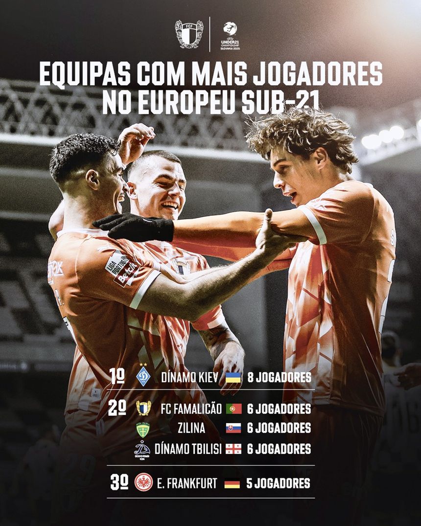 O Famalicão está no pódio das equipas com mais representantes no Campeonato da Europa de sub-21, um dado mencionado pelo clube nas redes sociais.