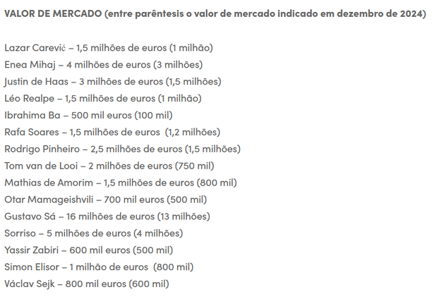 Para se ter uma noção, o valor de mercado de Justin de Haas passou de €1,5 M para €3 M. Gustavo Sá está agora avaliado em €16 M e Sorriso em €5 M.