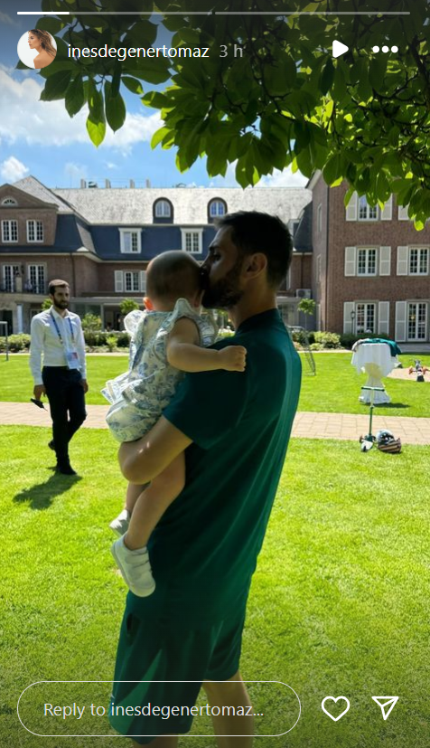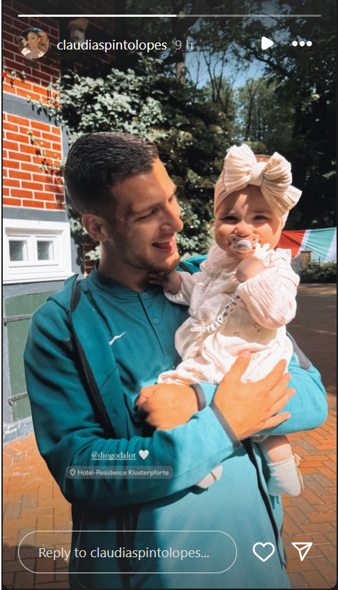 Através de um storie no Instagram, Carolina Bastos Lopes, esposa de Diogo Dalot, partilhou uma fotografia que mostra o lateral do Manchester United a dar colo à pequena Clara, filha do casal.