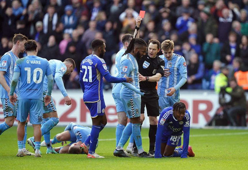 O Leicester foi ao terreno do Coventry e até começou a vencer, com uma grande penalidade convertida por Dewsbury-Hall, aos 44 minutos, mas pouco depois, Fatawu, jogador emprestado pelo Sporting, foi expulso por uma falta dura sobre um adversário e a equipa de Ricardo Pereira (titular) teve de jogar a segunda parte com menos um.