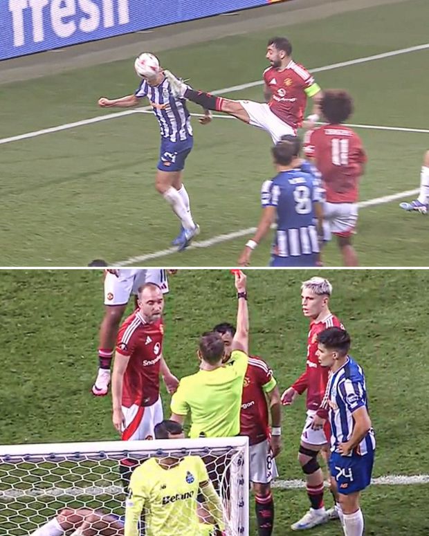 Bruno Fernandes acabou por ver cartão vermelho contra o FC Porto, na 2.ª jornada da Liga Europa, que terminou com empate (3-3), no estádio do Dragão. Só nesta temporada, em seis dos 10 encontros oficiais que os azuis e brancos fizeram, a equipa adversária ficou reduzida a 10 elementos.