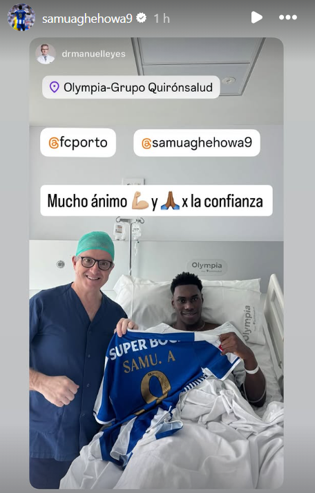 «Muito ânimo e obrigado pela confiança», escreveu o especialista no Instagram, com uma foto de ambos no centro médico-cirúrgico onde o camisola 9 do FC Porto foi operado.