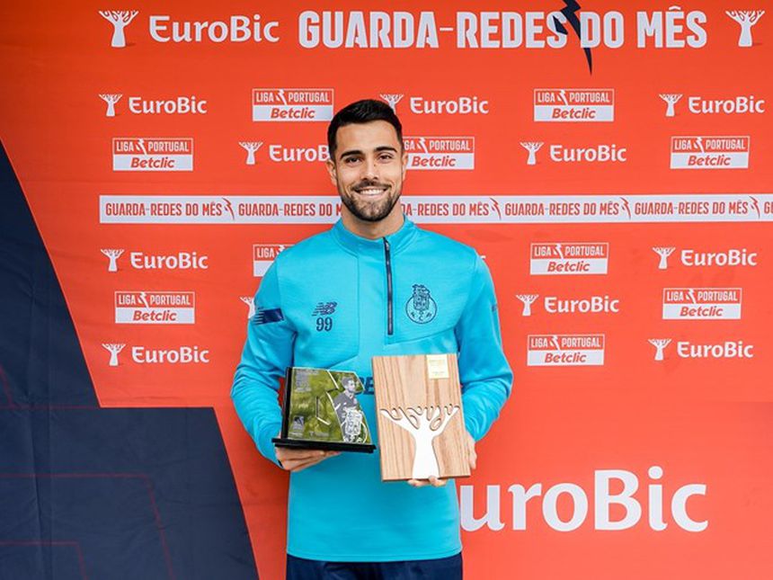 Diogo Costa recebeu esta sexta-feira o prémio de melhor guarda-redes do mês de janeiro da Liga. O internacional português do FC Porto, de 24 anos, foi distinguido pelos treinadores principais da competição, pela primeira vez nesta temporada, ao reunir 31,11% das preferências, batendo a concorrência de Trubin (Benfica), com 22,96%, e de Ricardo Velho (Farense), com 13,33%.