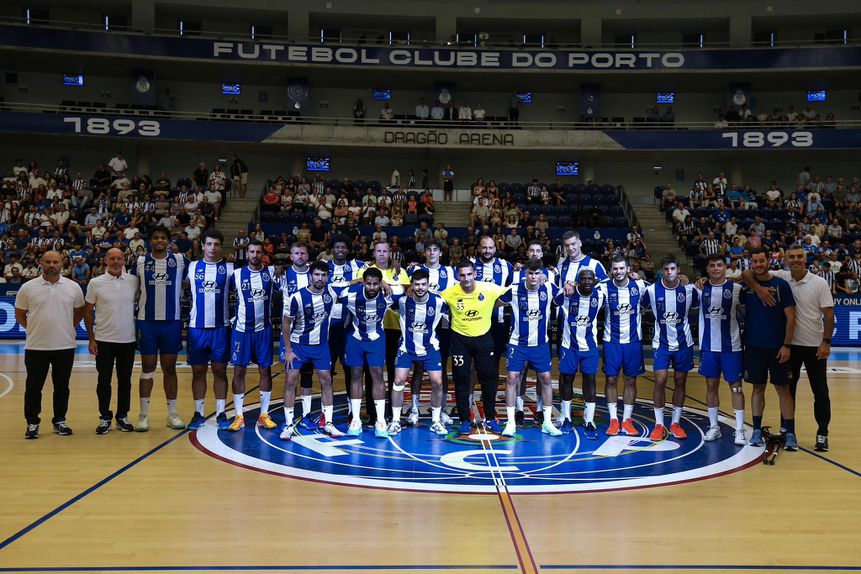 O FC Porto empatou a 28 golos com o Dinamo de Bucareste em jogo de apresentação da equipa de andebol aos adeptos, no Dragão Arena, este sábado.