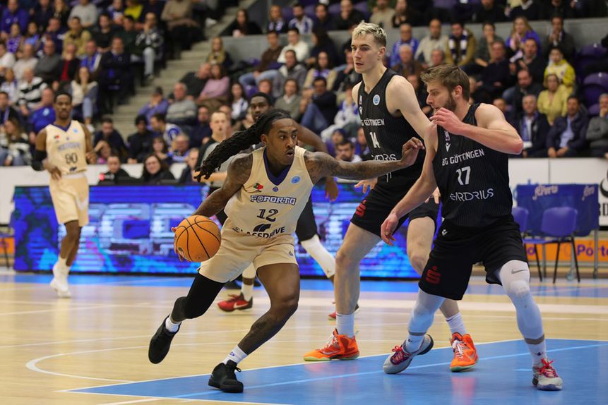 Os norte-americanos Tanner Omlid, com 29 pontos, duas assistências e seis ressaltos, e Cleveland Melvin, com 20/6/6, foram os principais obreiros do triunfo dos azuis e brancos, sustentado numa entrada forte e numa saída ainda mais pujante, após um terceiro quarto de jogo difícil, em que enfrentaram a réplica do adversário germânico.