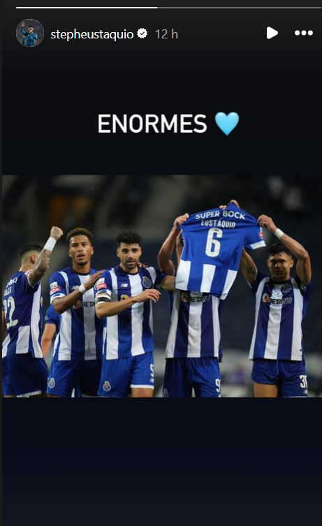 Nos festejos do golo do Taremi, os jogadores portistas ergueram uma camisola com o número 6 e o nome de Eustáquio em homenagem ao companheiro de equipa, neste momento difícil.