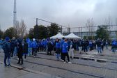 Perto de um milhar de adeptos do FC Porto fazem-se ouvir no apoio à equipa durante o aquecimento...
