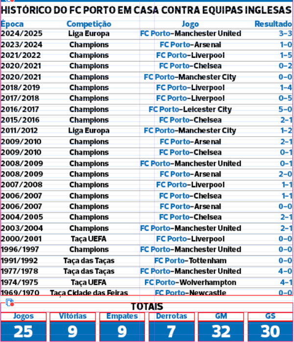 O último triunfo portista na Cidade Invicta foi obtido no reinado de Sérgio Conceição, em 2023/2024, na primeira mão dos oitavos de final da Champions. Galeno, num excelente gesto técnico, provocou um autêntico sismo no estádio do FC Porto ao marcar um golo aos 90+4', insuficiente, contudo, para os dragões seguirem em frente na competição, já que foram eliminados em Londres, na segunda mão, através da marca de grandes penalidades.