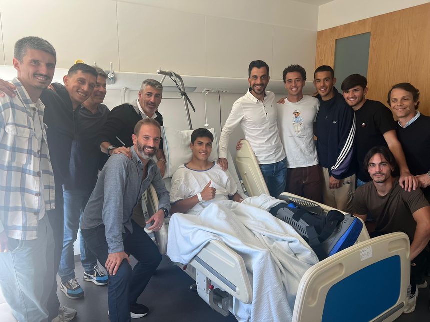 Na imagem que acompanha a nota, é possível constatar que o lateral-esquerdo, ainda na cama do hospital, recebeu a visita dos companheiros de equipa, assim como do treinador João Brandão.