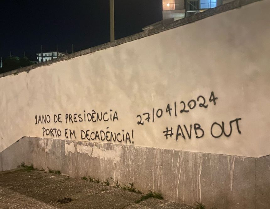 Contestação contra André Villas-Boas pintada nos muros junto ao Estádio do Dragão