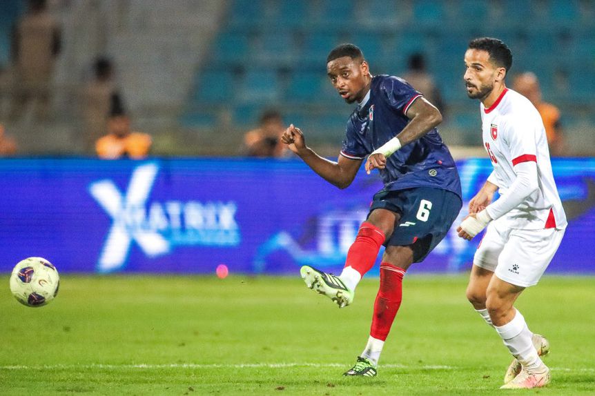 Pablo Rosario contra a Jordânia (Foto: Federação Dominicana de Futebol)