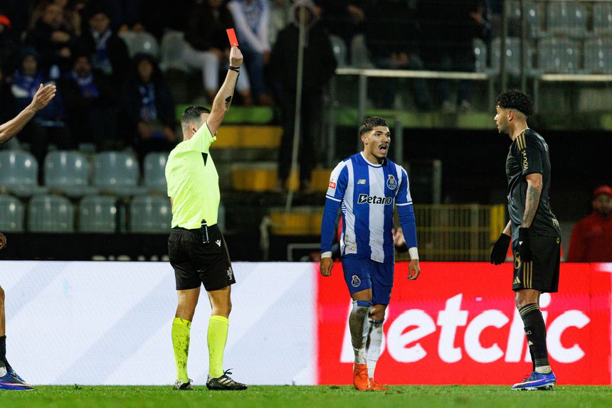 Lançado aos 59 minutos por Francesco Farioli para o lugar de Borja Sainz, o brasileiro viu o cartão vermelho aos 79’, num lance sobre David Sousa que deixou o defesa do Casa Pia a sangrar no rosto, após um pontapé com força excessiva na cabeça. O atleta já cumpriu um jogo de castigo no clássico com o Sporting (1-1) e agora falha a deslocação à Choupana, frente ao Nacional.