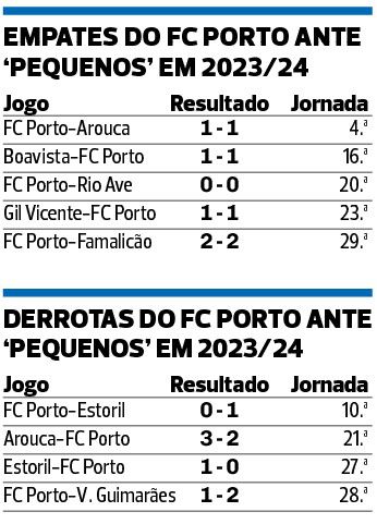 Os avisos, as campainhas a soar e os alarmes todos ligados também formam um lembrete doloroso para os azuis e brancos no que toca aos pontos perdidos na Liga 2023/24 frente a equipas sem aspirações ao título ou coisa parecida: foram 22 pontos que voaram.