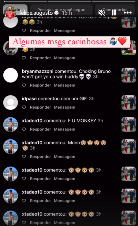 Felipe divulga mensagens que recebeu após apertar pescoço a Bruno Fernandes