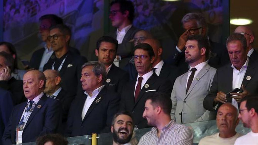 Fernando Gomes, presidente da Federação Portuguesa de Futebol, posicionou-se no meio de Rui Costa e Pinto da Costa no camarote presidencial durante a Supertaça em Aveiro.