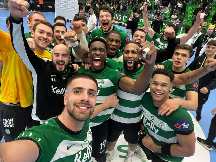 Jogadores do Sporting celebraram o apuramento para os 'quartos' da Liga Europeia (EHF)