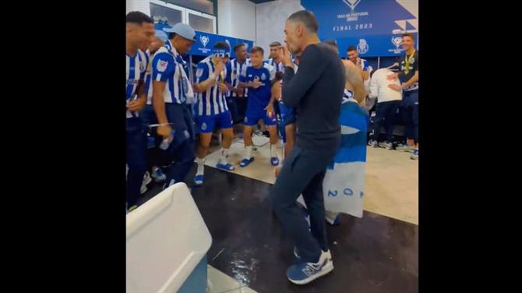 A festa da conquista da Taça de Portugal pelo FC Porto, que derrotou o SC Braga por 2-0, começou no relvado no Jamor, mas estendeu-se depois ao balneário.