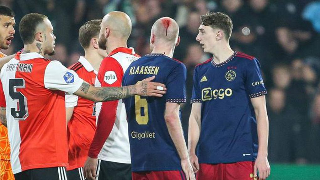 Feyenoord–Ajax marcado por grave incidente: jogador atingido e a sangrar (vídeos)
