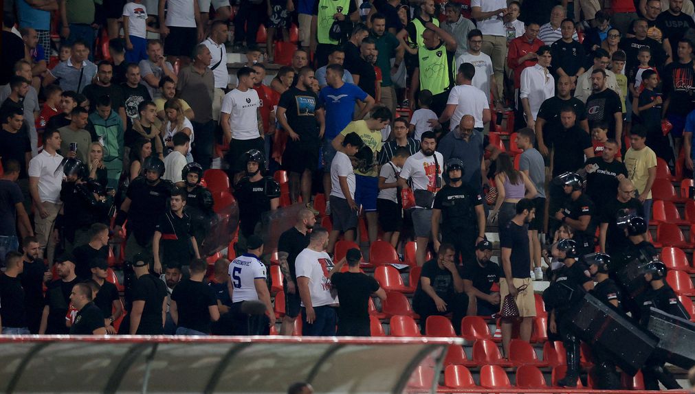 Durante a derrota pesada diante da Inglaterra, registaram-se momentos de tensão nas bancadas e altercações entre os adeptos sérvios.