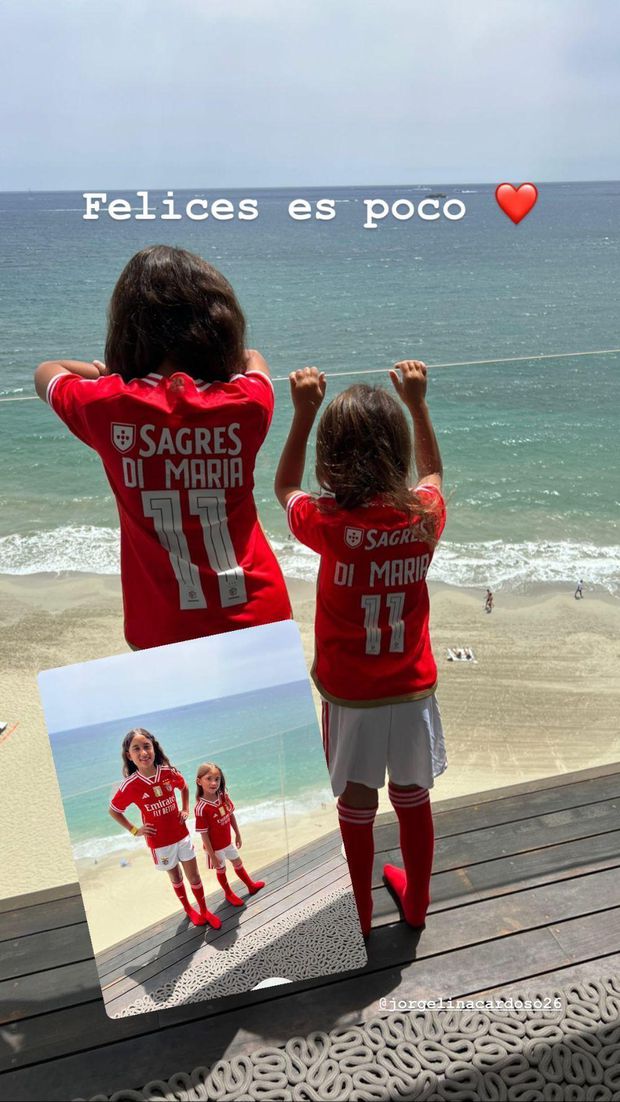 Mía e Pía, as duas filhas de Ángel Di María, já estão preparadas para a nova temporada e equipadas a rigor, isto é, com a camisola do Benfica com o nome e número (11) do pai.