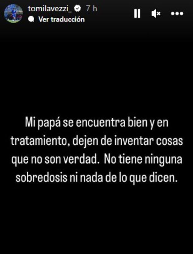 «O meu pai está bem e em tratamento, parem de inventar coisas que não são verdade. Ele não tem nenhuma overdose, nem nada disso que dizem», negando, assim, rumores de que Lavezzi tinha tomado excesso de medicamentos.
