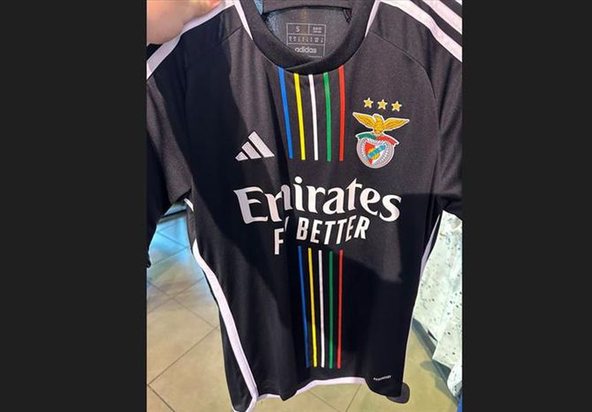 Um adepto visitou uma loja num centro comercial da Flórida, nos EUA, especializada em equipamentos desportivos, um autêntico paraíso das camisolas, no qual já estava à venda a nova camisola preta do clube da Luz, com listas de cores verticais.