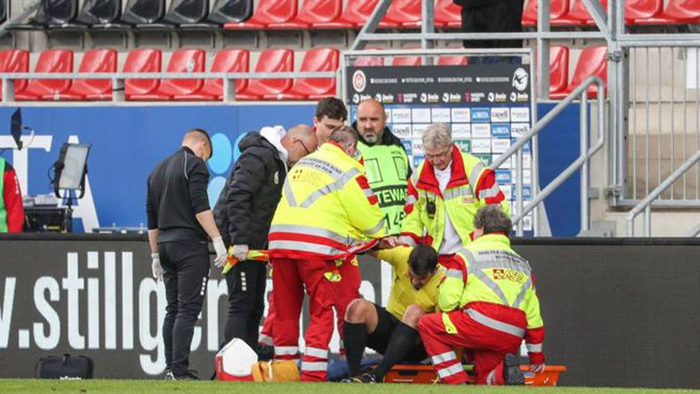 O auxiliar foi assistido pelas equipas médicas mas não conseguiu continuar em funções, sendo transportado de maca. Sem quarto árbitro – só a partir da próxima época será obrigatório que a Bundesliga 3 o tenha -, o ‘speaker’ de serviço questionou se algum dos espectadores presentes na bancada poderia, pois, substituir o fiscal de linha. Por sorte lá estava Jannis Jaschke, que desceu as escadas rumo ao relvado, foi equipar-se – o jogo esteve interrompido cerca de 25 minutos – e ganhou uma história para contar aos netos.