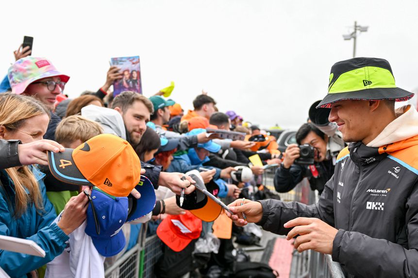 Lando Norris é um piloto adorado pelos britânicos e a correr em casa, os fãs não perdem uma oportunidade de estar com o inglê - Foto: IMAGO