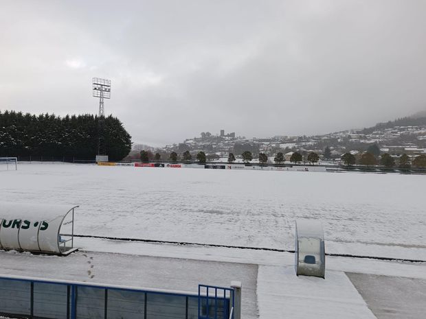 Forte nevão abateu-se sobre o Estádio Dr. Diogo Vaz Pereira, em Montalegre (Foto Rádio Montalegre)