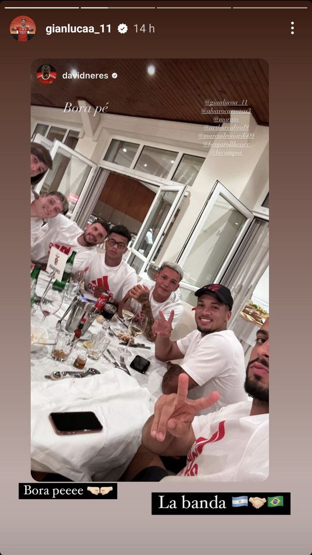 A fotografia original foi entretanto repartilhada por todos os outros presentes, com destaque para a partilha feita por Prestianni, que frisou, com uma mensagem, a boa relação entre argentinos e brasileiros no plantel.