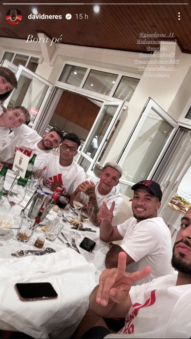O momento foi partilhado originalmente por David Neres que, na sua conta pessoal no Instagram, publicou uma fotografia do batalhão sul-americano encarnado a relaxar pós-jogo.