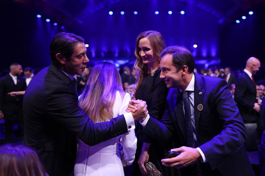 FOTO: o cumprimento entre Varandas e Rui Costa na gala Quinas de Ouro