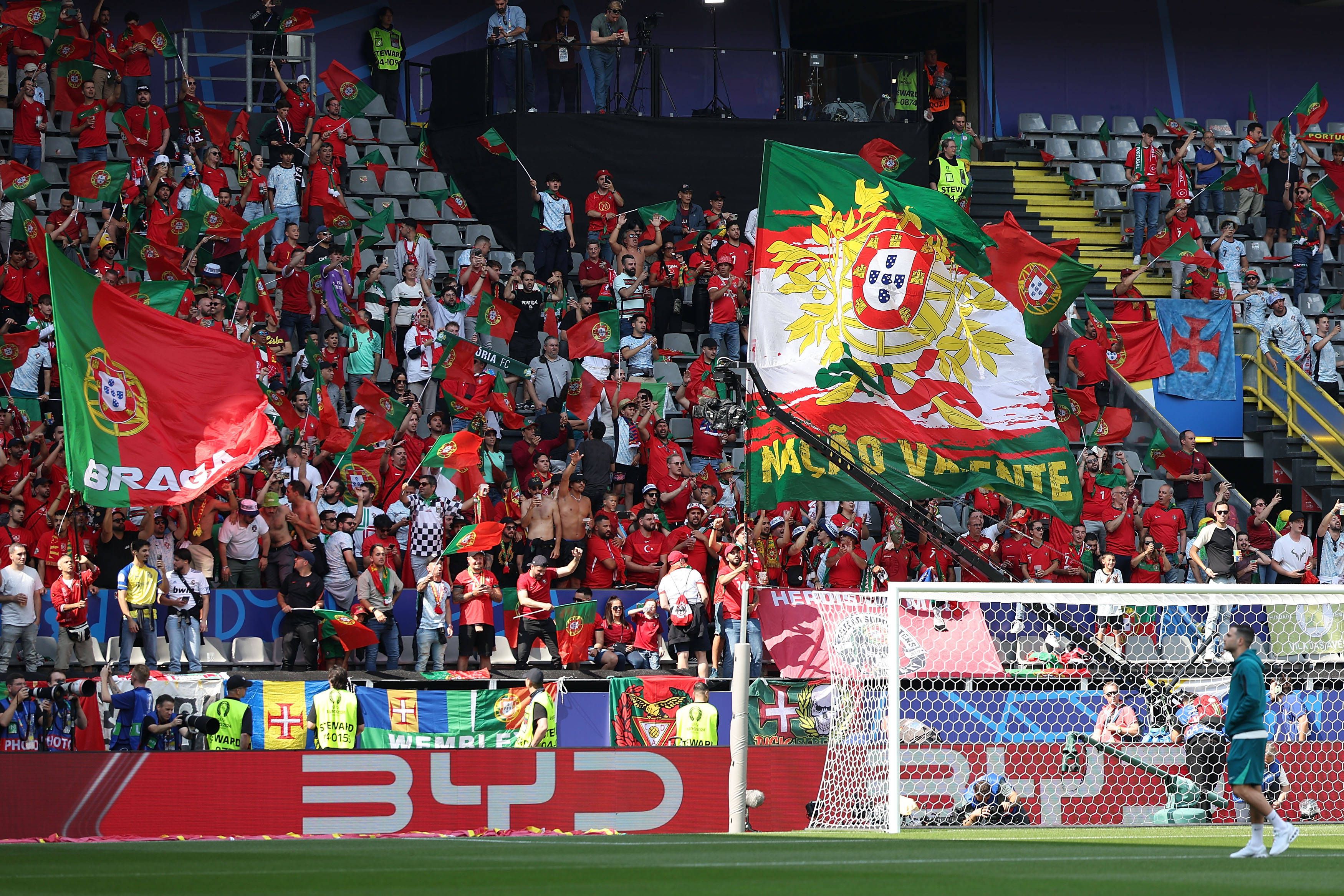 Os turcos estavam em maioria no Signal Iduna Park em Dortmund, mas os portugueses também mostraram as vozes e as cores de Portugal.