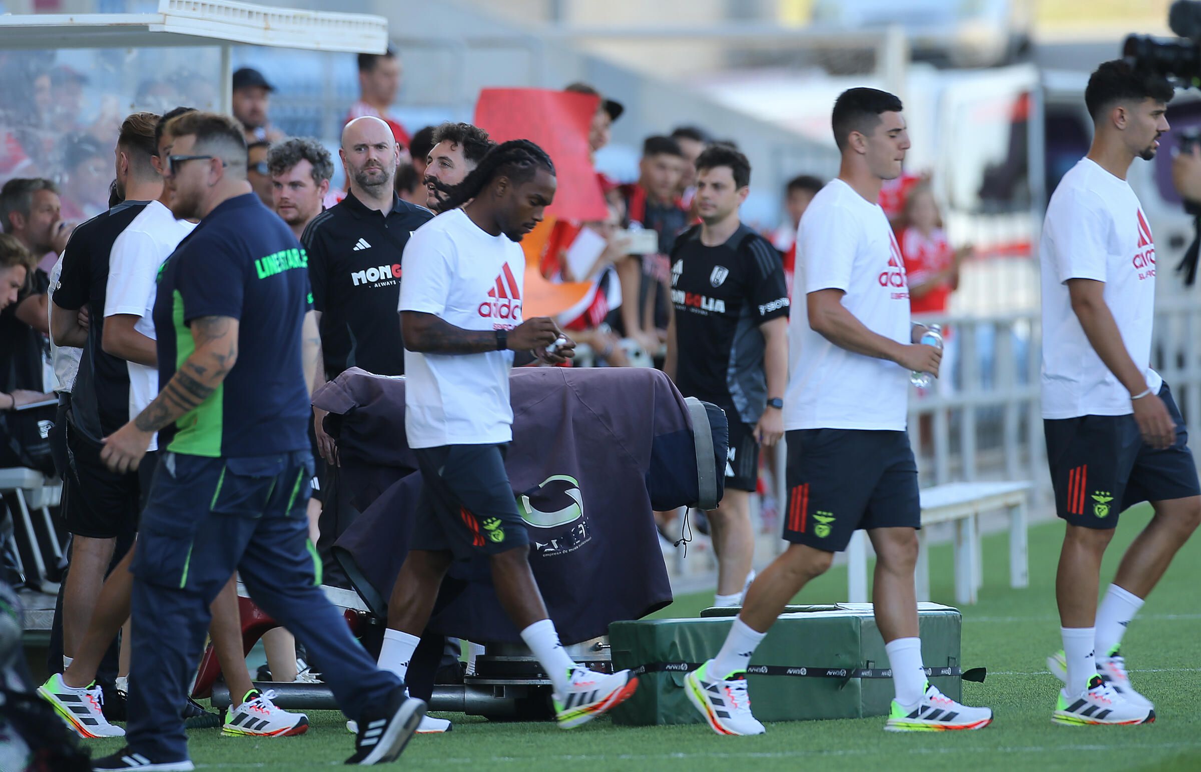 O último encontro da pré-época do Benfica, frente ao Fulham, serviu como confirmação da chegada de Renato Sanches ao plantel das águias. O médio emprestado pelo PSG esteve no relvado do Estádio Algarve antes do jogo, que assistiu depois na bancada, na companhia dos lesionados Andreas Schjelderup e Rollheiser.