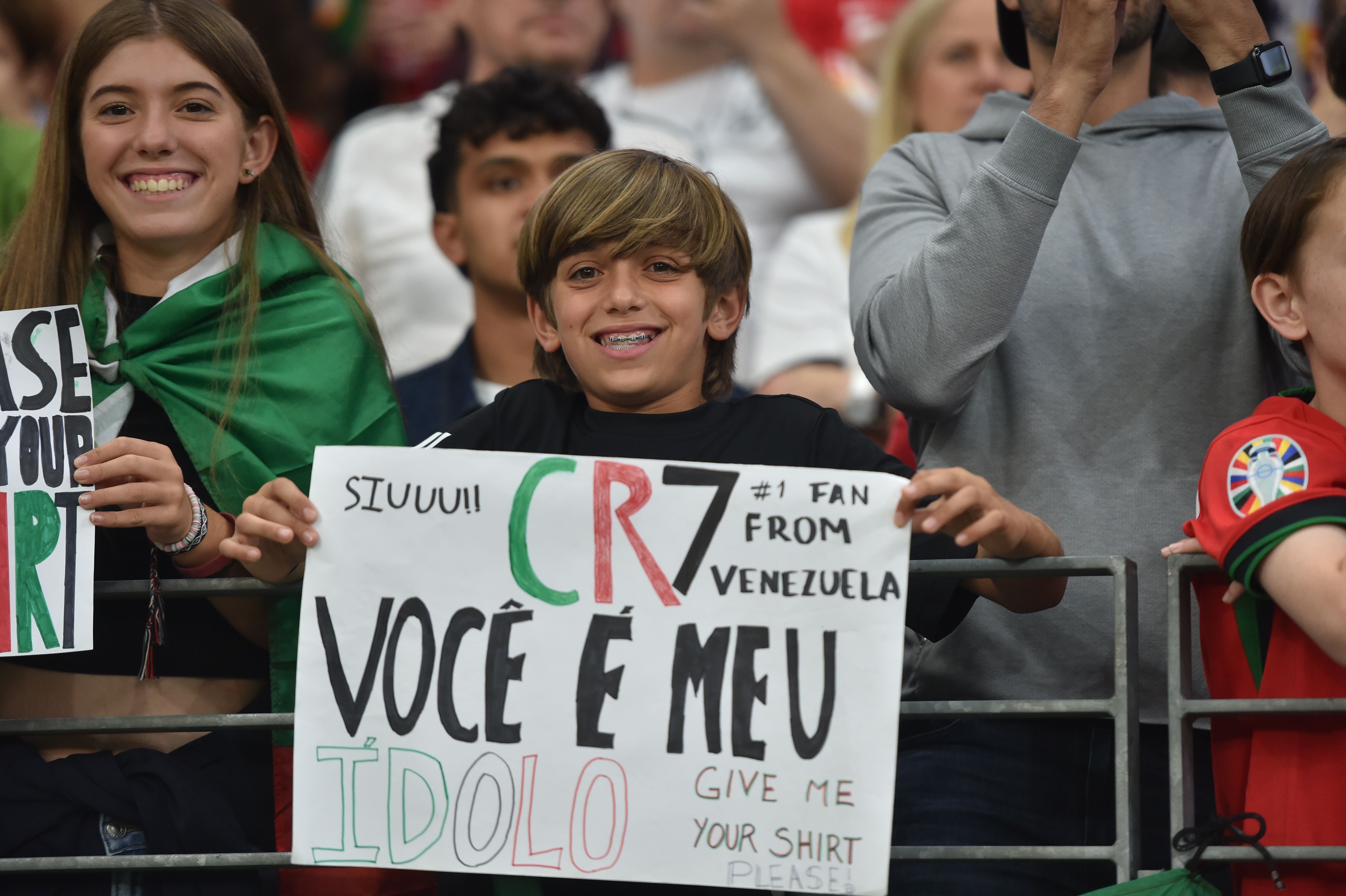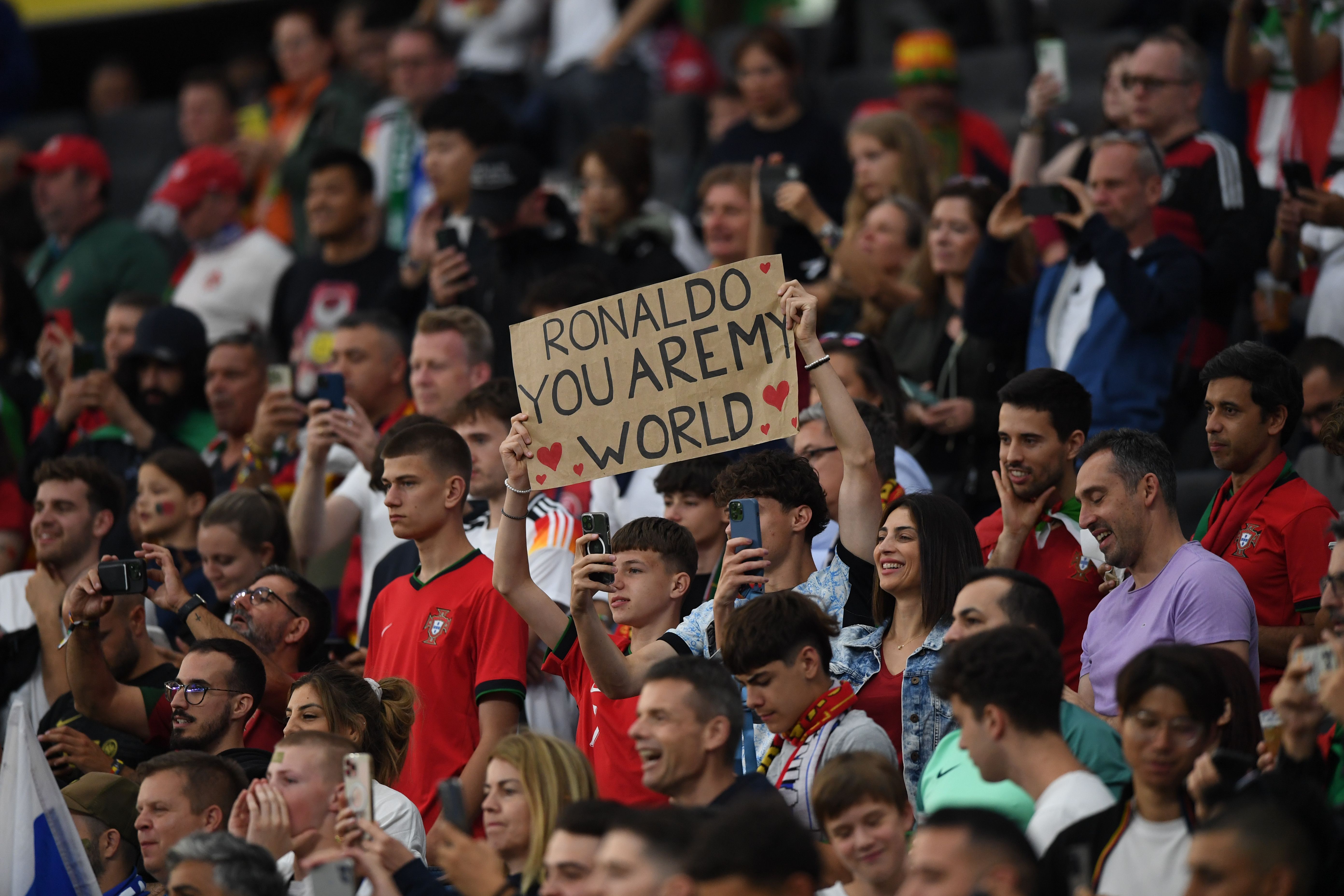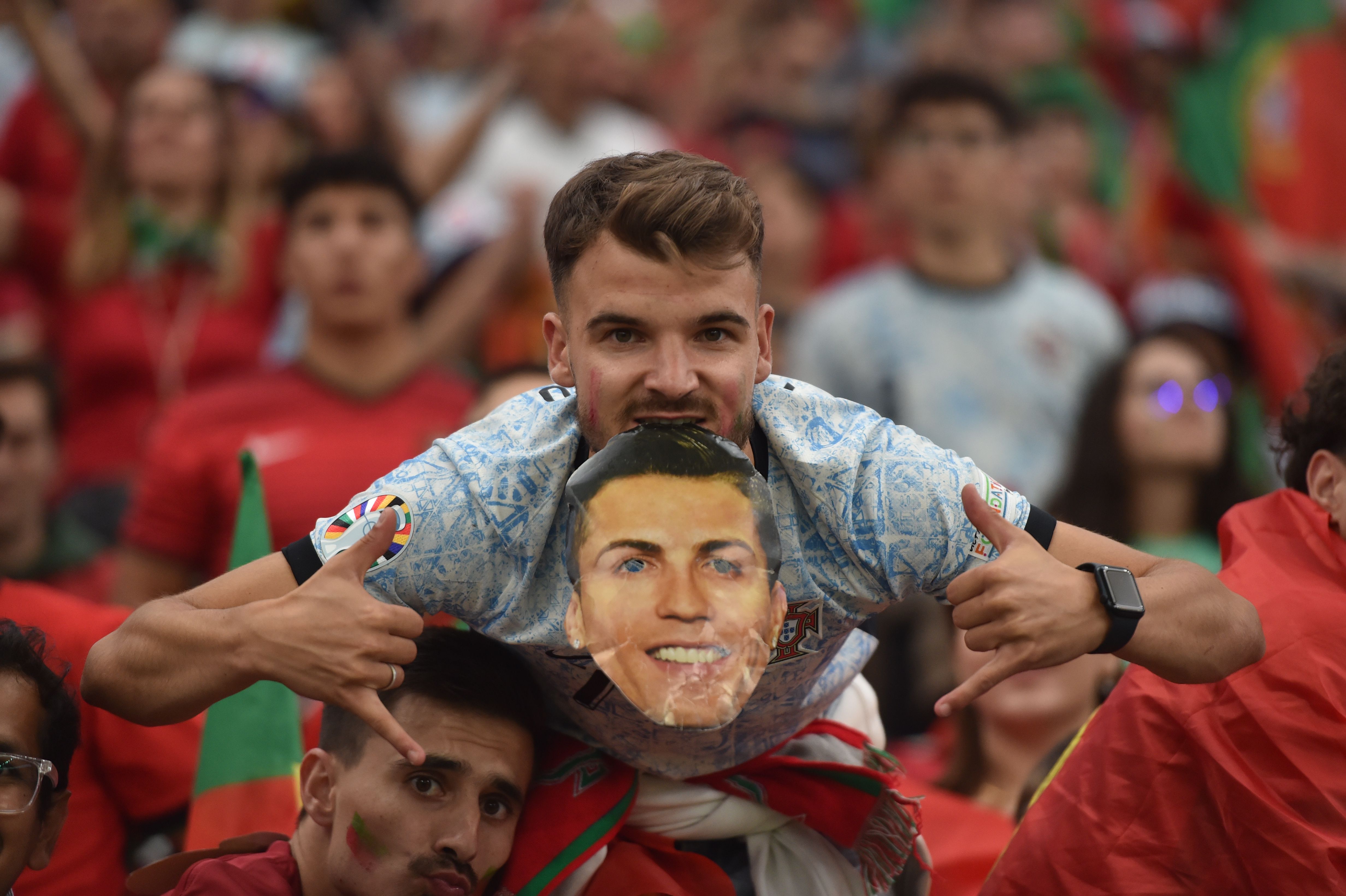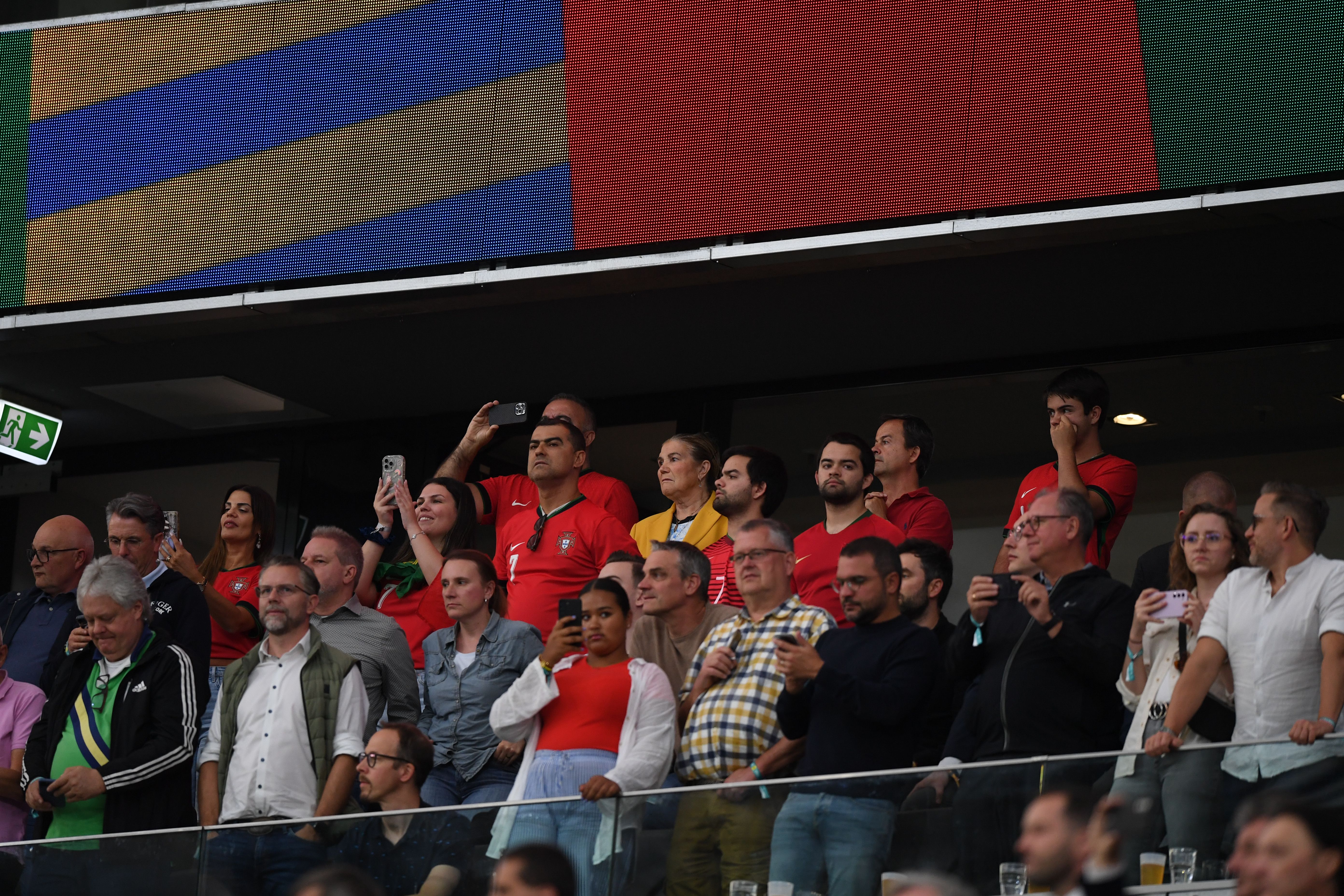 Grande ambiente em Frankfurt, com um forte apoio nas bancadas para Portugal frente à Eslovénia, nos oitavos de final do Euro 2024. Dolores Aveiro, mãe de Cristiano Ronaldo, deslocou-se a Frankfurt para assistir ao encontro. Nas bancadas destaque ainda para máscaras insólitas e pedidos de camisolas a jogadores da Seleção Nacional.