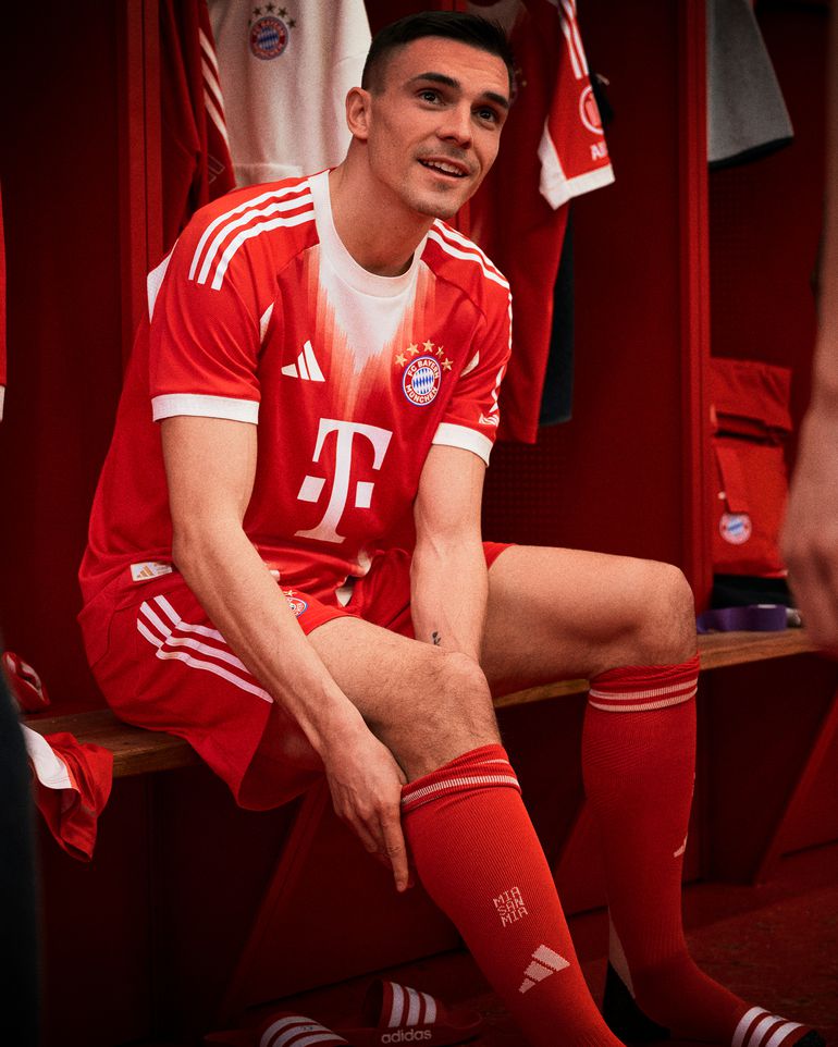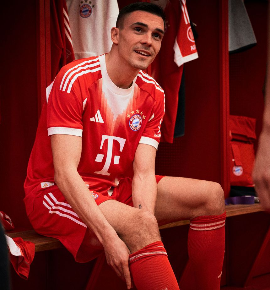 «Apresenta as cores clássicas do clube, o vermelho e o branco, com um pormenor especial que sublinha a ligação à cidade de Munique: um “M” estilizado na parte da frente», refere o clube.