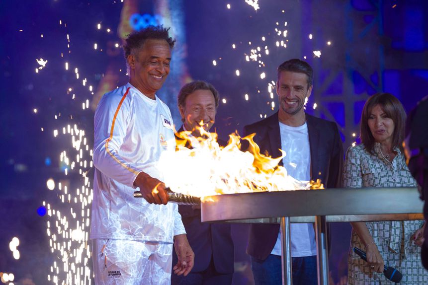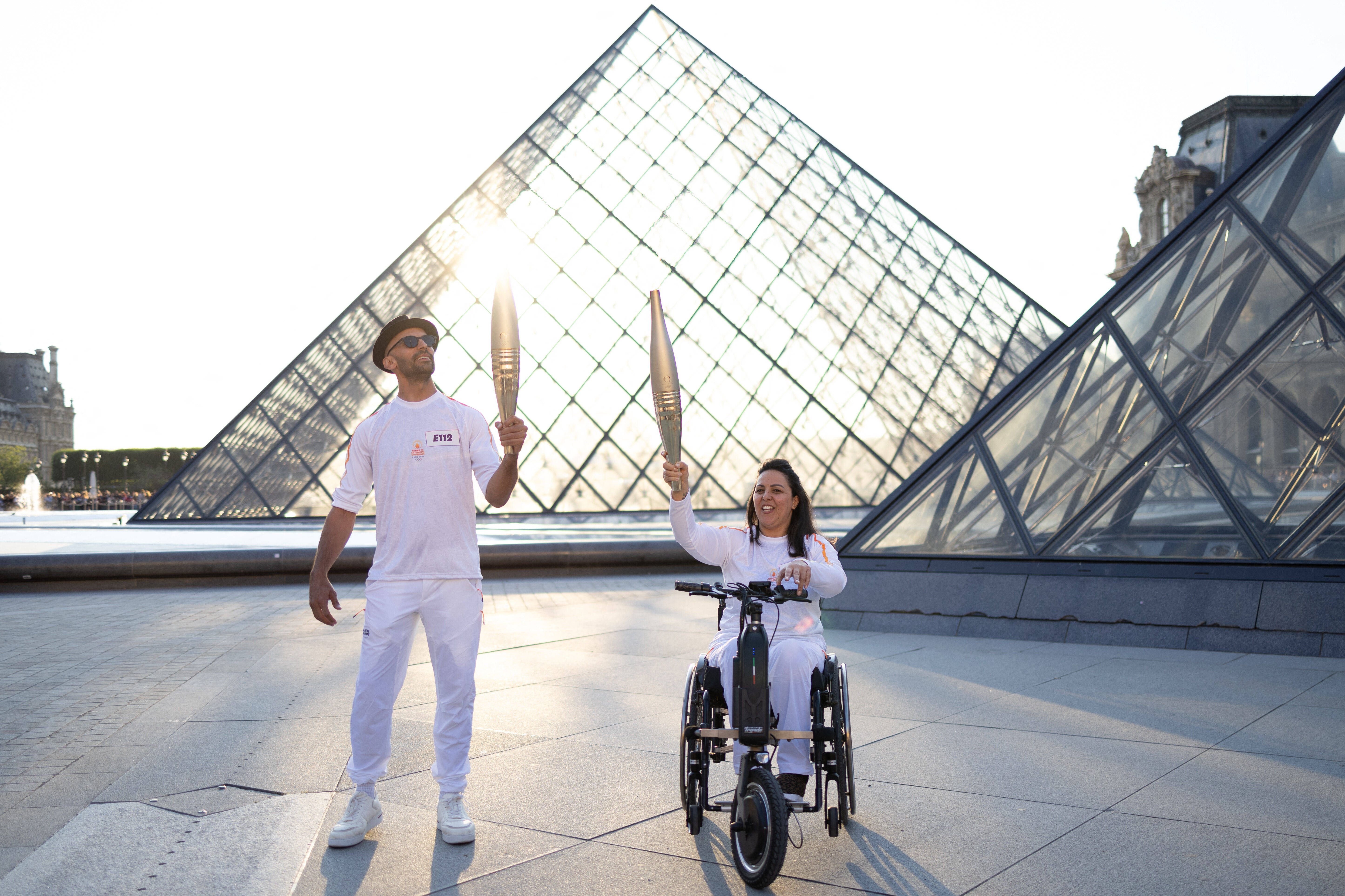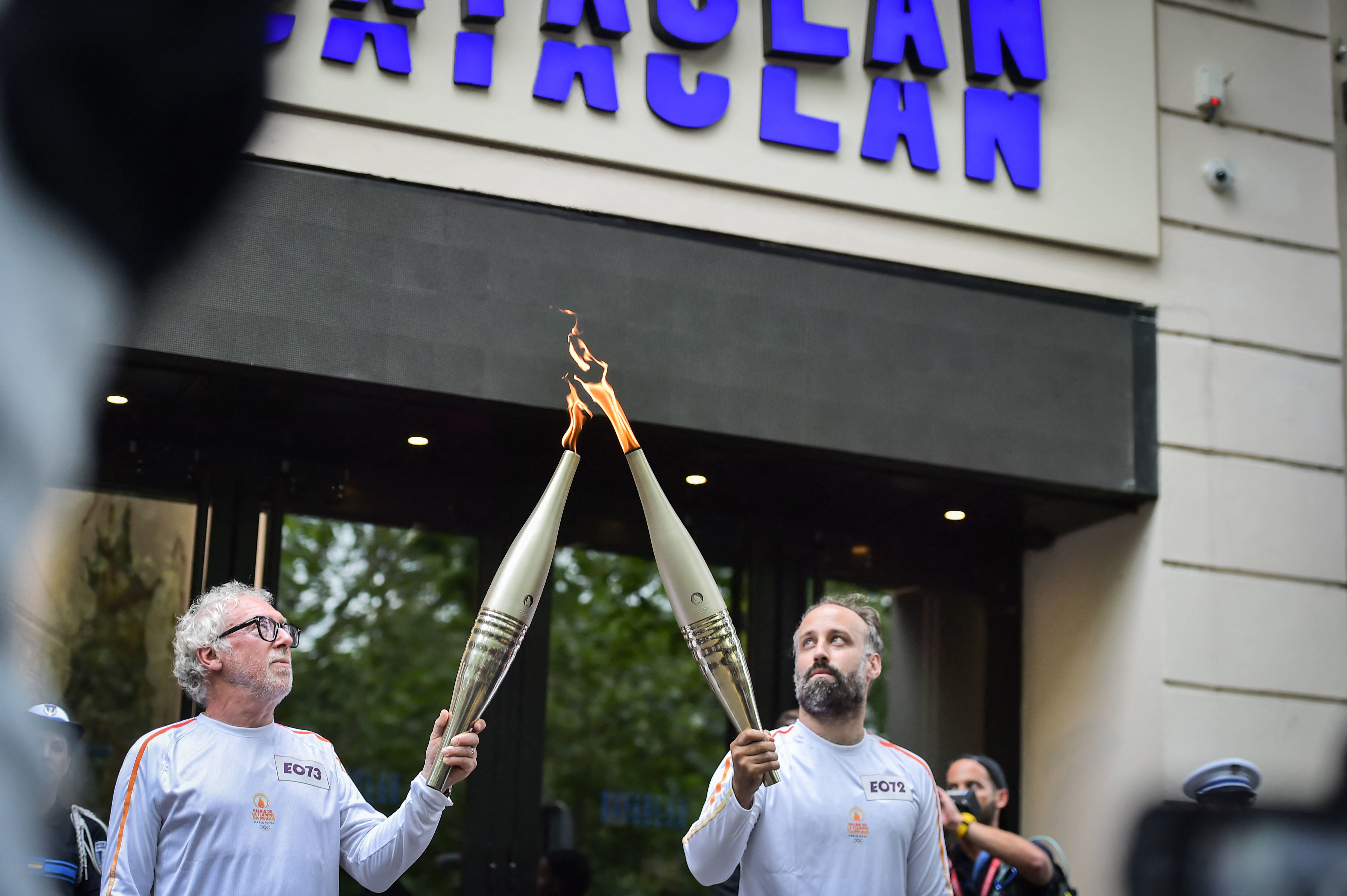 Thierry Henry, treinador dos sub-21 e da seleção olímpica da França, foi um dos transportadores da chama, que passou pela sala de espetáculos Bataclan, local de um ataque terrorista em 2015 durante um concerto, a Grande Mesquita de Paris, Notre Dame e até o interior do Louvre.