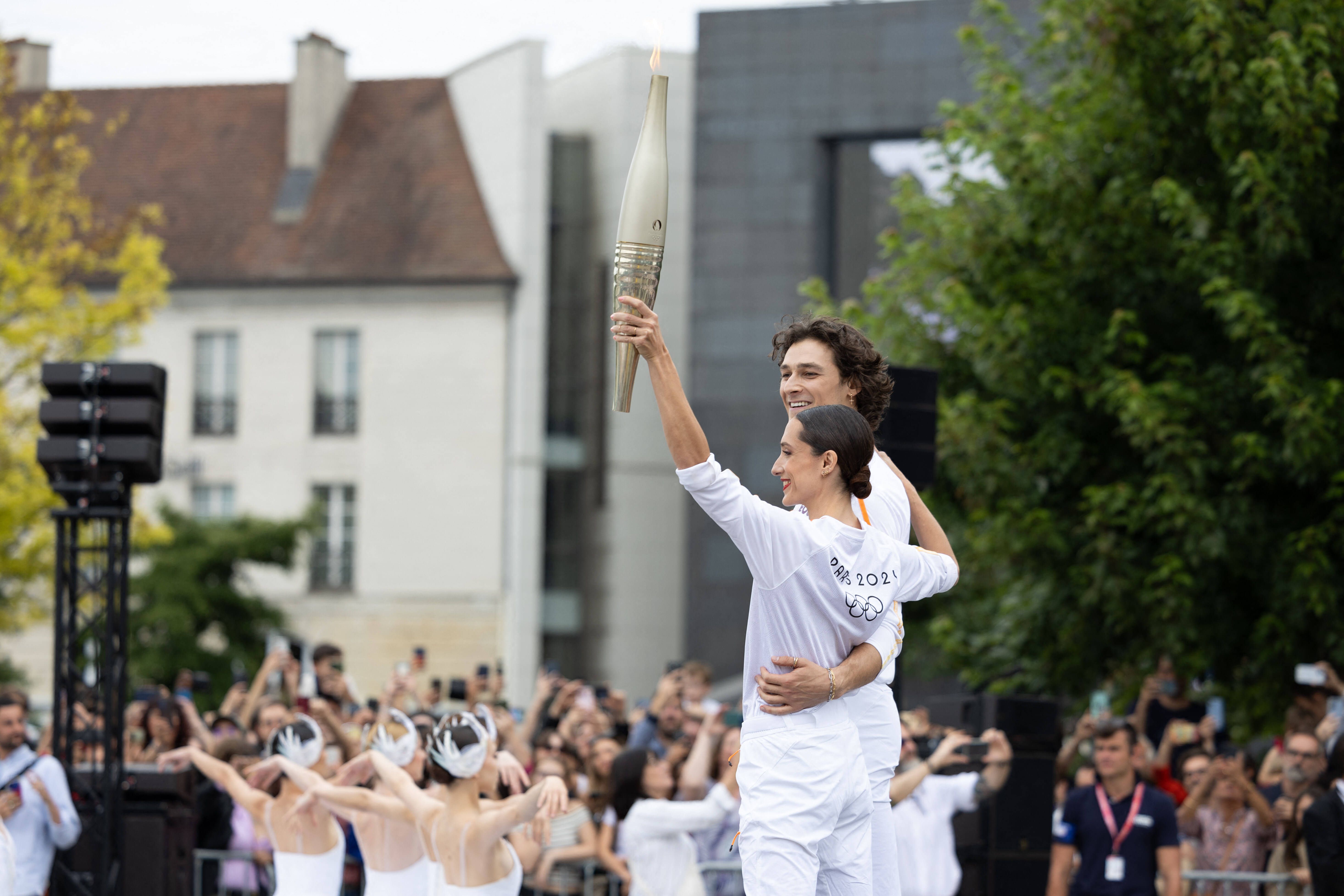 Foi no dia da festa nacional de França, 14 de julho, que a tocha olímpica chegou a Paris, passando por pontos simbólicos como o Bataclan, os Campos Elísios, o museu do Louvre e a Catedral de Notre Dame, entre outros lugares simbólicos da capital francesa.