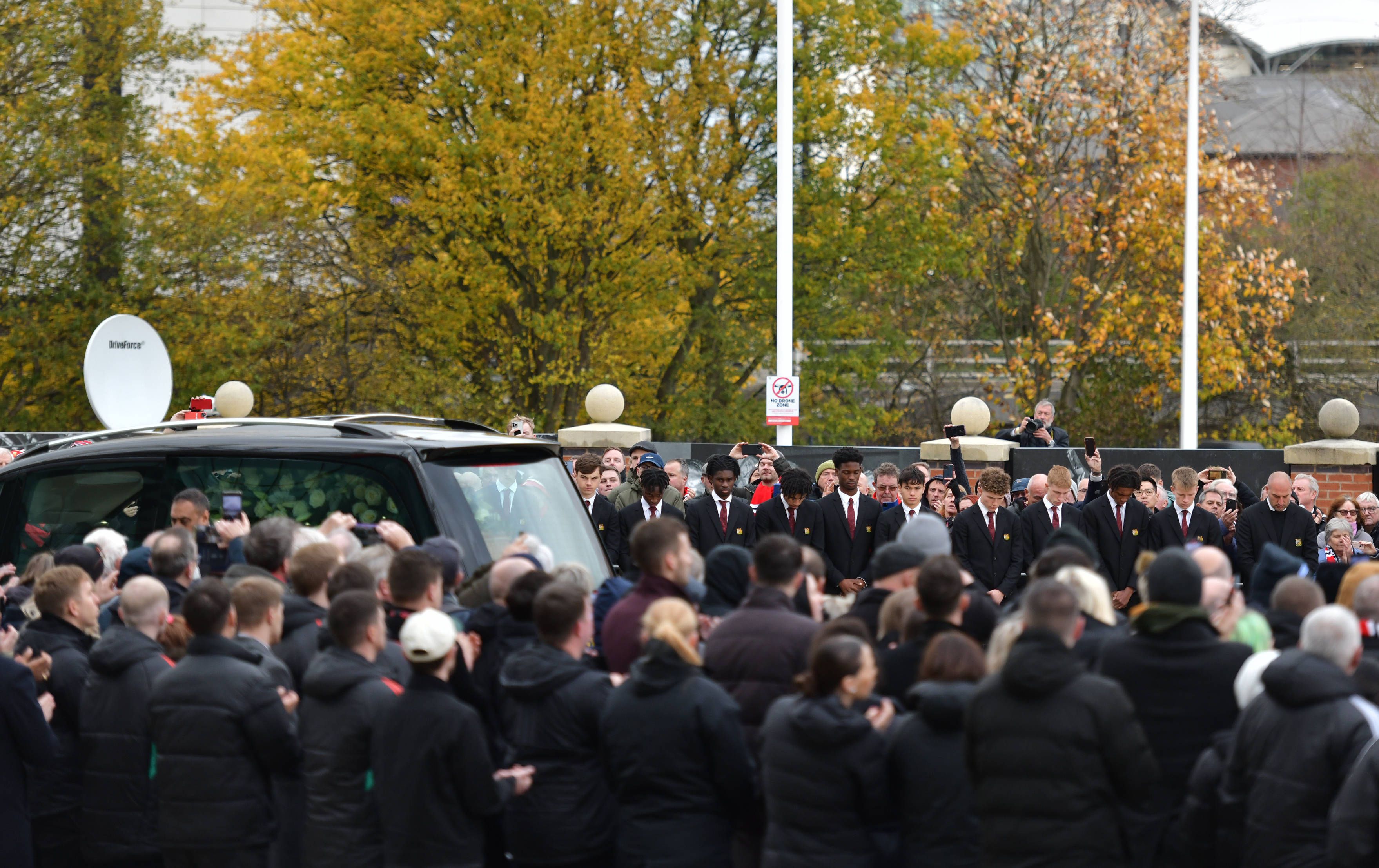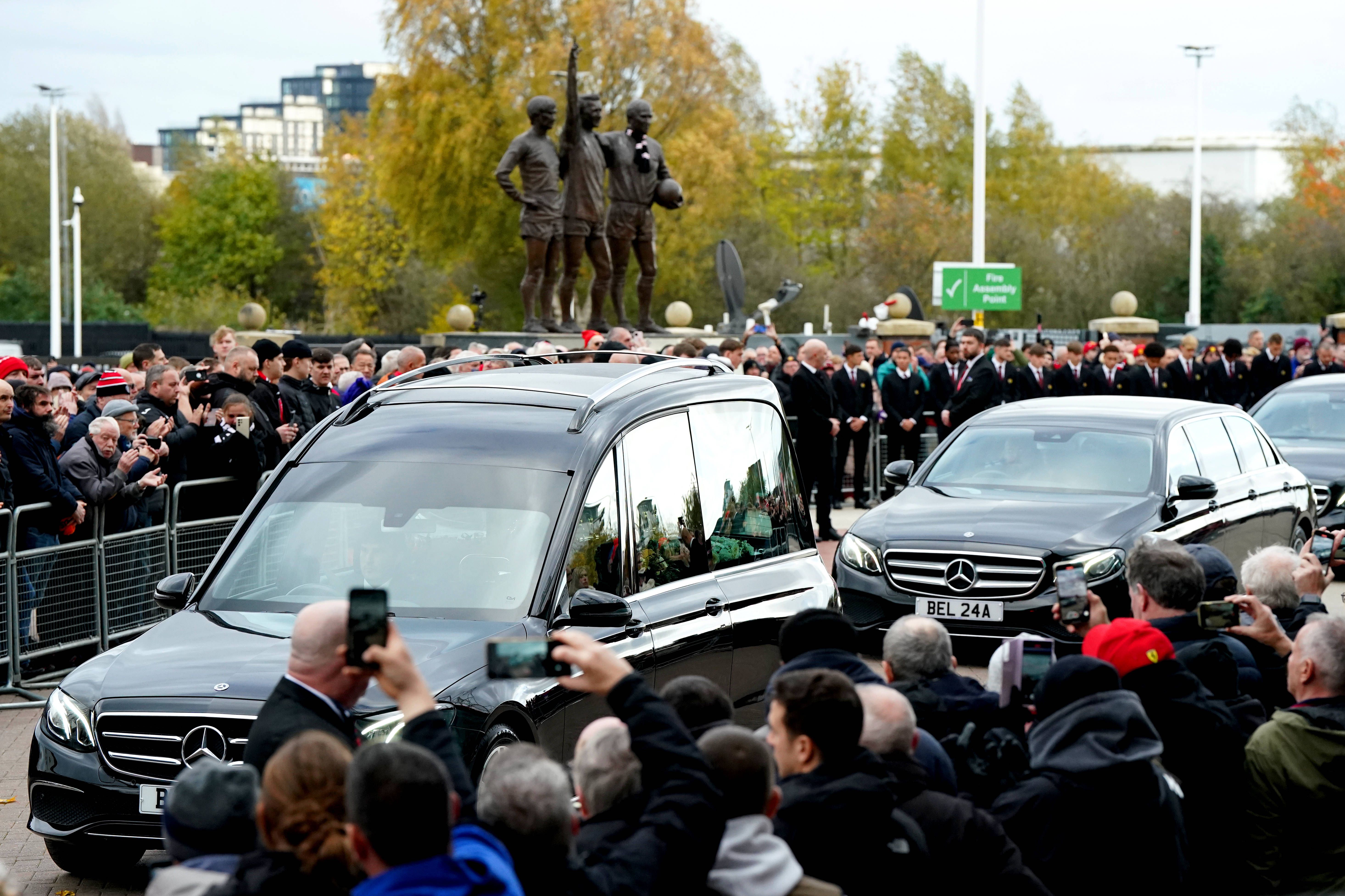 O cortejo fúnebre passou antes junto ao estádio de Old Trafford e em frente à Estátua da trindade – onde Charlton está imortalizado com George Best e Denis Law, num momento de maior comunhão com os adeptos. O carro parou, com as formações sub-18 e sub-21 do clube a fazerem guarda de honra.