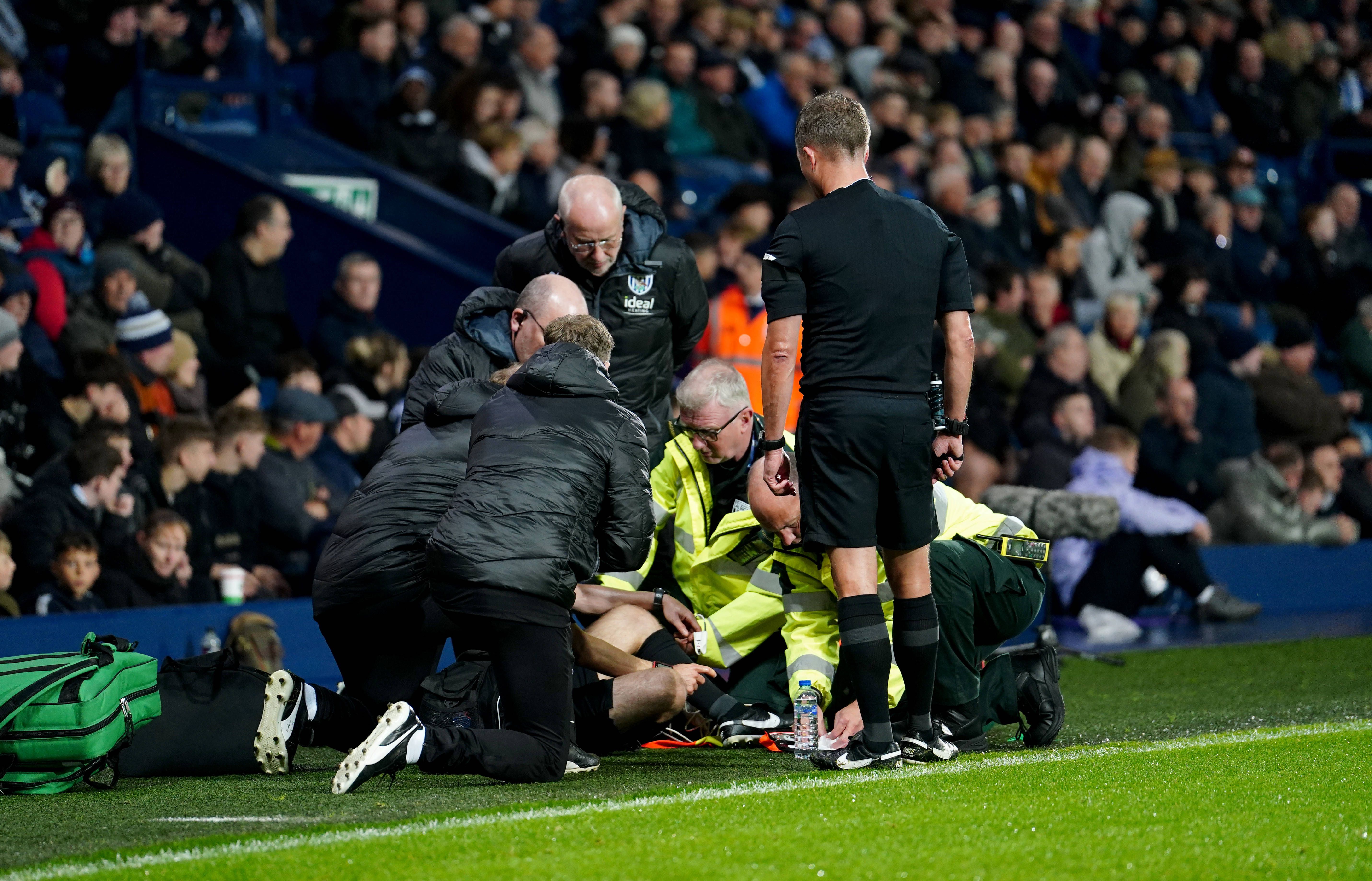 A conta oficial do West Brom no X confirmou o incidente: «Uma paragem no jogo enquanto um dos assistentes do árbitro recebe tratamento.»