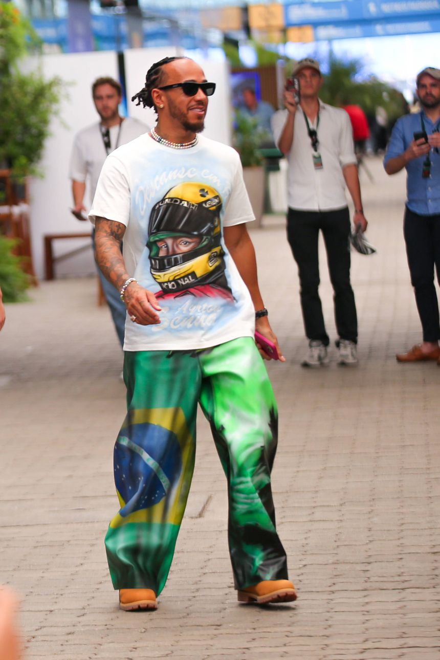 O britânico Lewis Hamilton, sete vezes campeão mundial de Fórmula 1, é, já se sabe, grande fã de Ayrton Senna, por isso não surpreendeu a sua escolha de vestuário ao chegar quinta-feira ao circuito de Interlagos, em São Paulo.